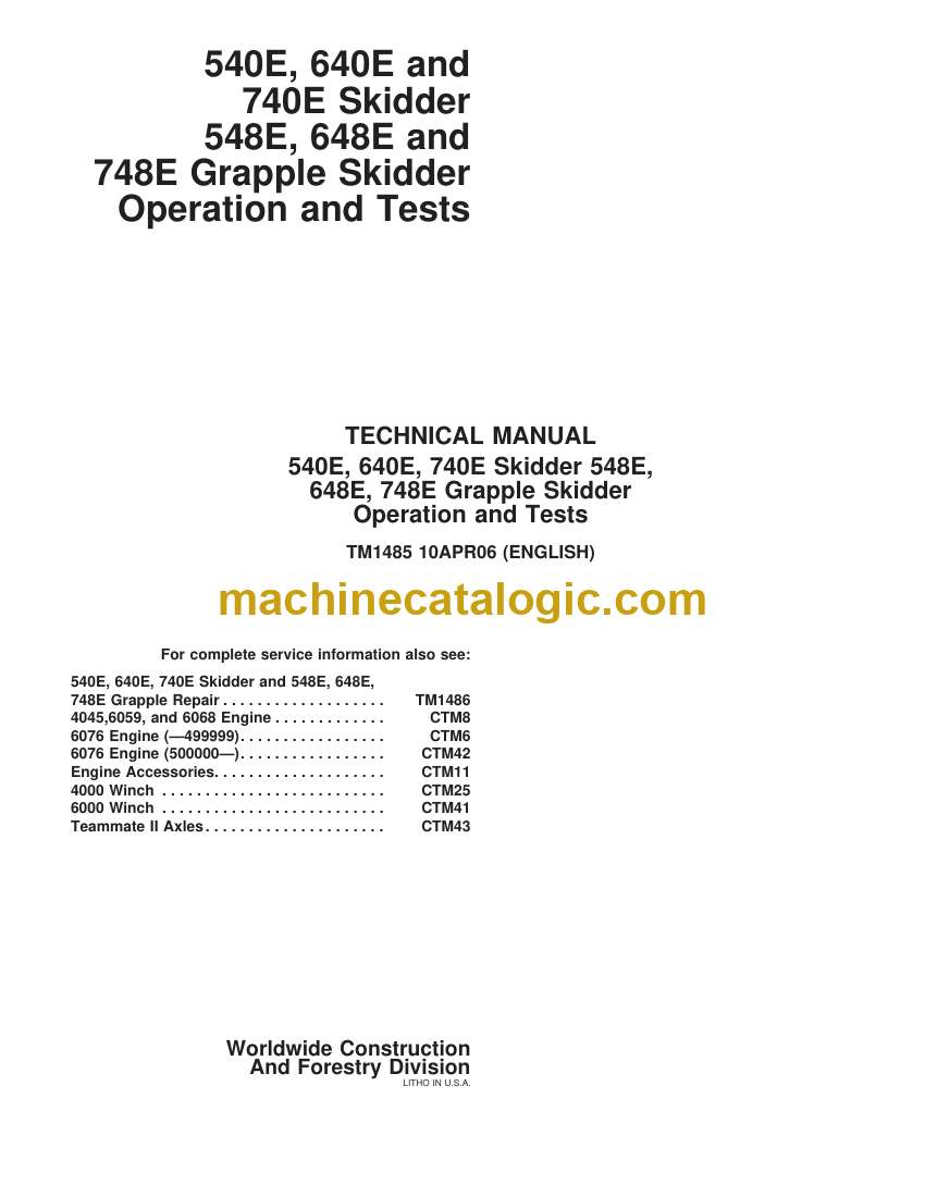 Model: 540E, 640E and 740E Skidder 548E, 648E and 748E Grapple Skidder