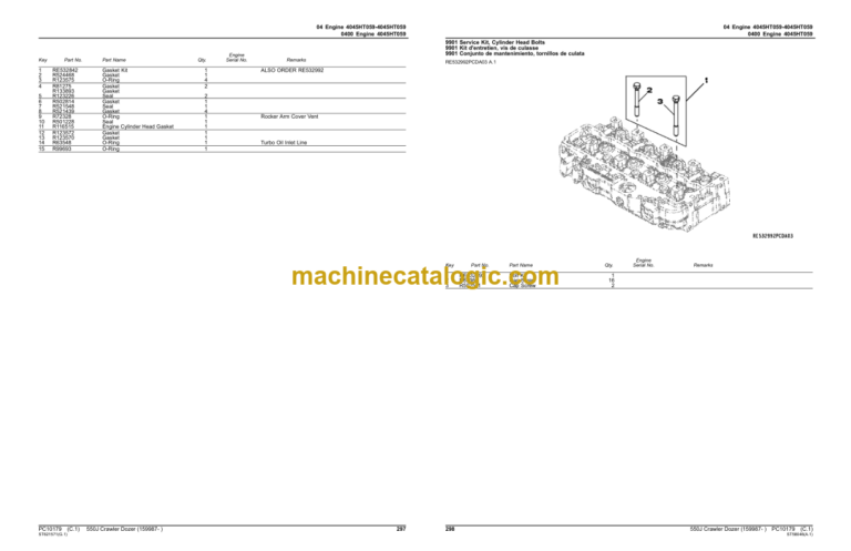 John Deere 550J Crawler Dozer Parts Catalog (PC10179)