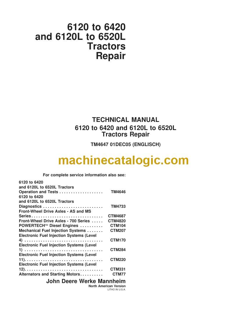 Model: 6120 to 6420 and 6120L to 6520L Tractors