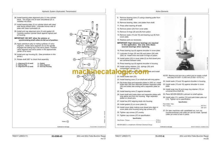 John Deere 643J and 843J Feller Buncher Repair Technical Manual (TM2217)