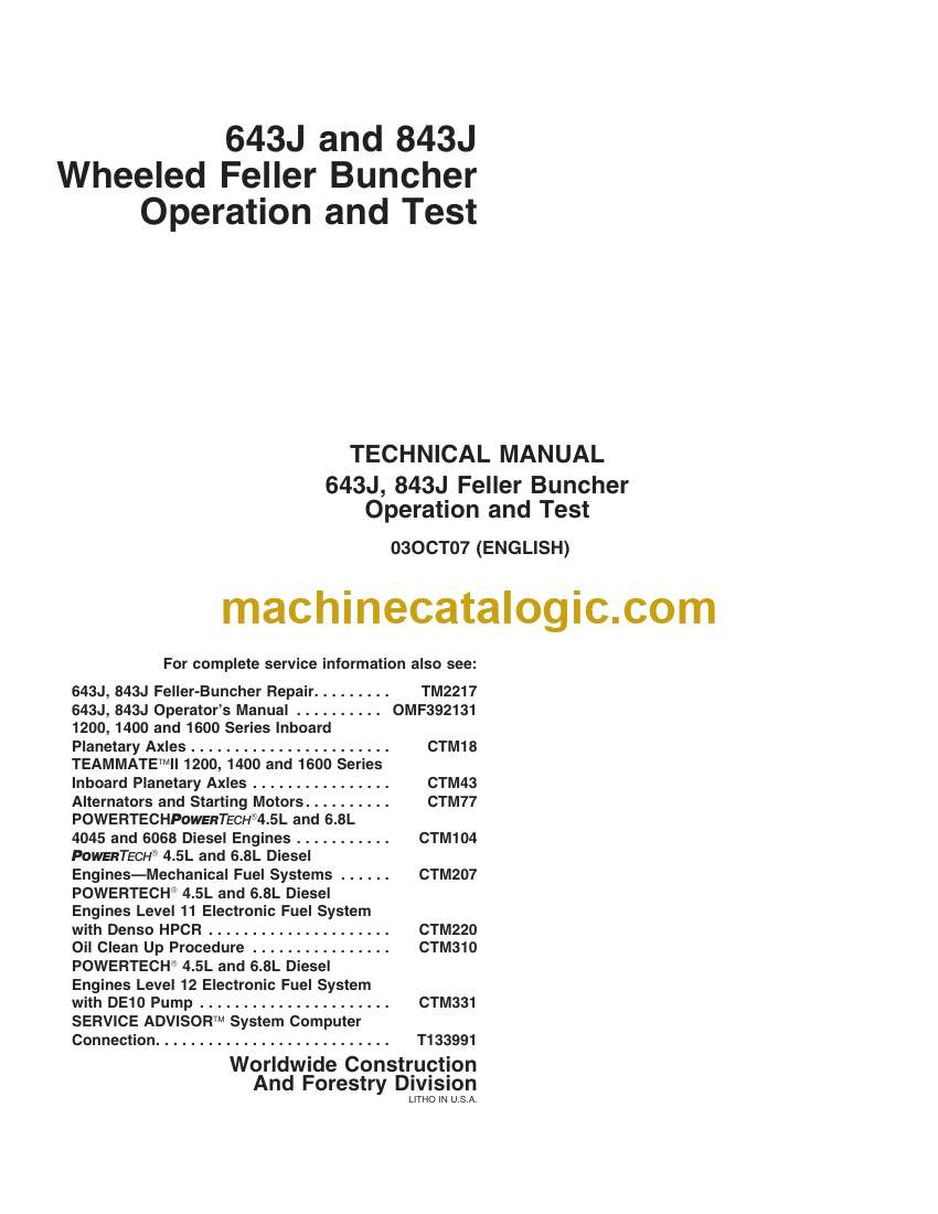 John Deere 643J and 843J Wheeled Feller Buncher Operation and Test Technical Manual (03OCT07)