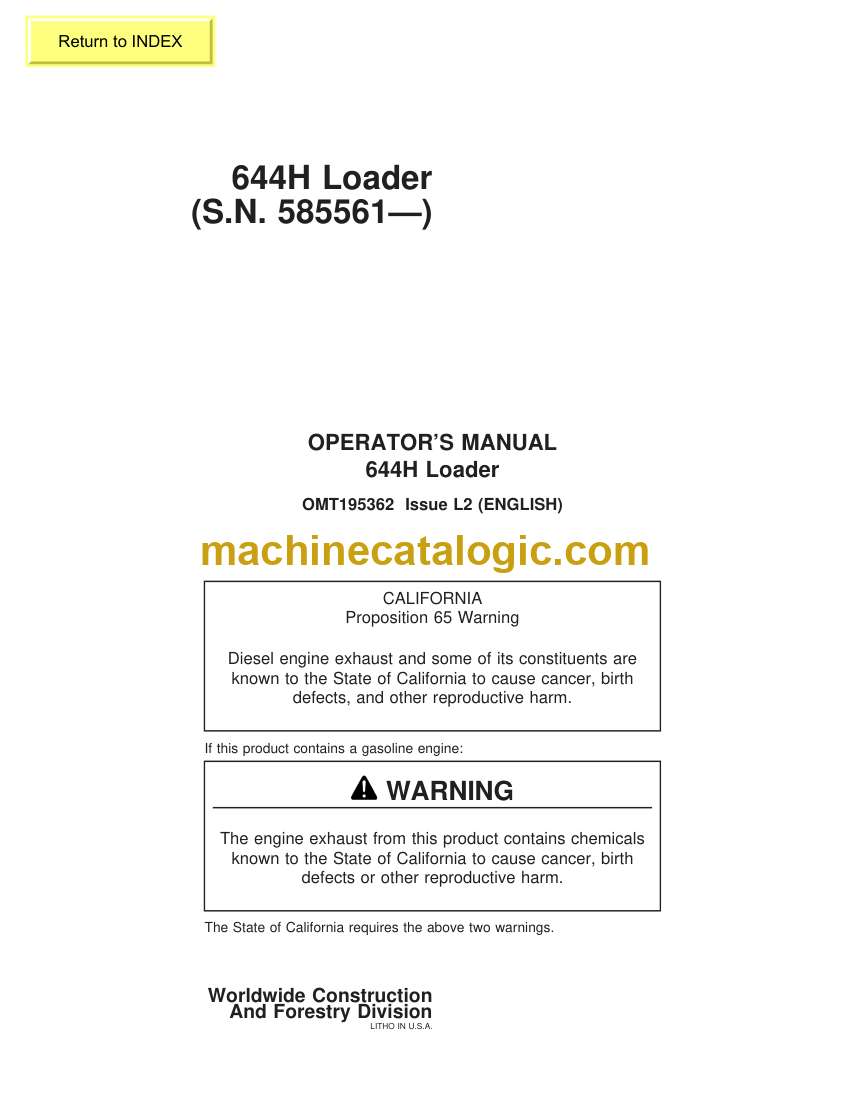 John Deere 644H Loader Index: