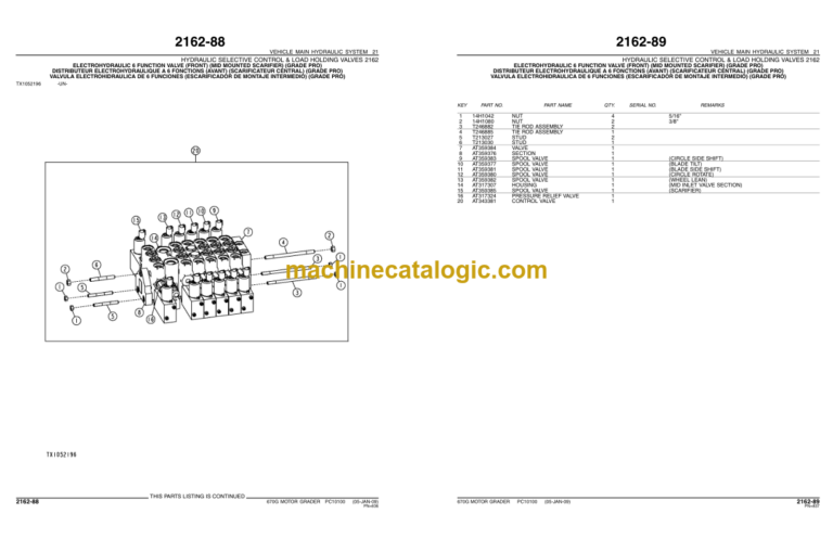 John Deere 670G 670GP MOTOR GRADER Parts Catalog