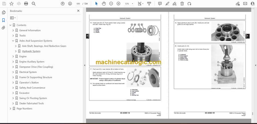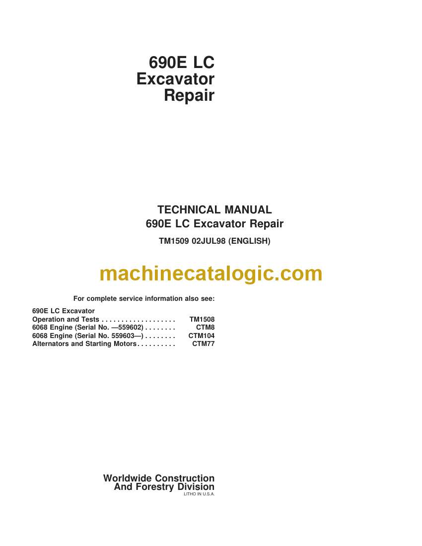 Running a 690E LC, you’re usually digging deep trenches, loading trucks, or working in muddy, rocky sites where everything gets stressed and packed with debris. This technical manual is what I’d keep handy when I need to trace a problem beyond basic checks and make sure the machine goes back together right. If, for example, the boom feels weak and you’re not sure if it’s a hydraulic control issue or a mechanical problem, this book helps you verify systems step by step before you start swapping parts.