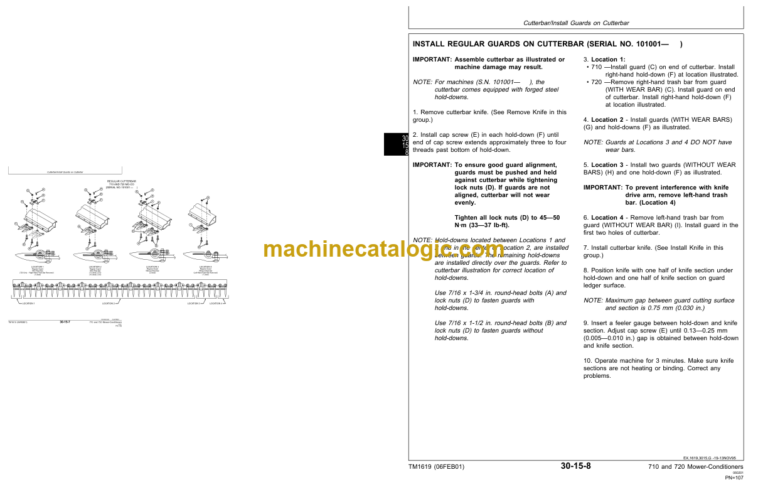John Deere 710 and 720 Mower-Conditioners Technical Manual (TM1619)