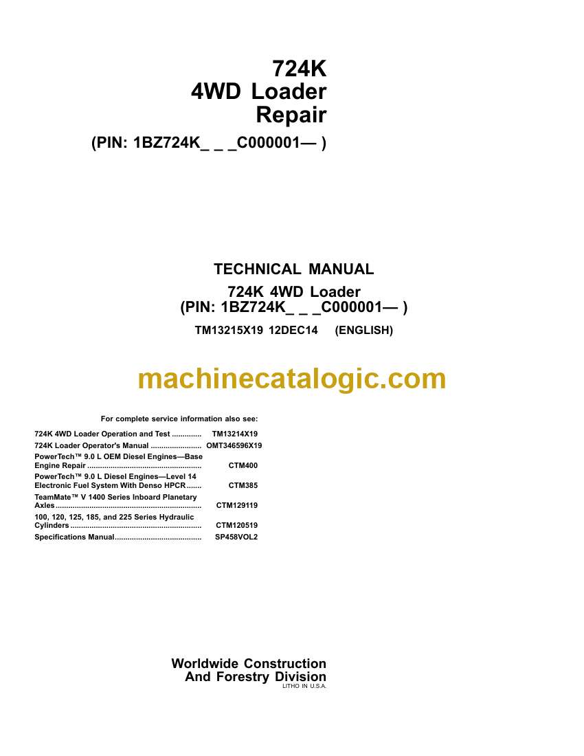 John Deere 724K 4WD Loader Repair Technical Manual (TM13215X19)