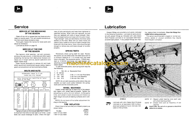 Operation Special Equipment Service Lubrication Assembly Specifications Index