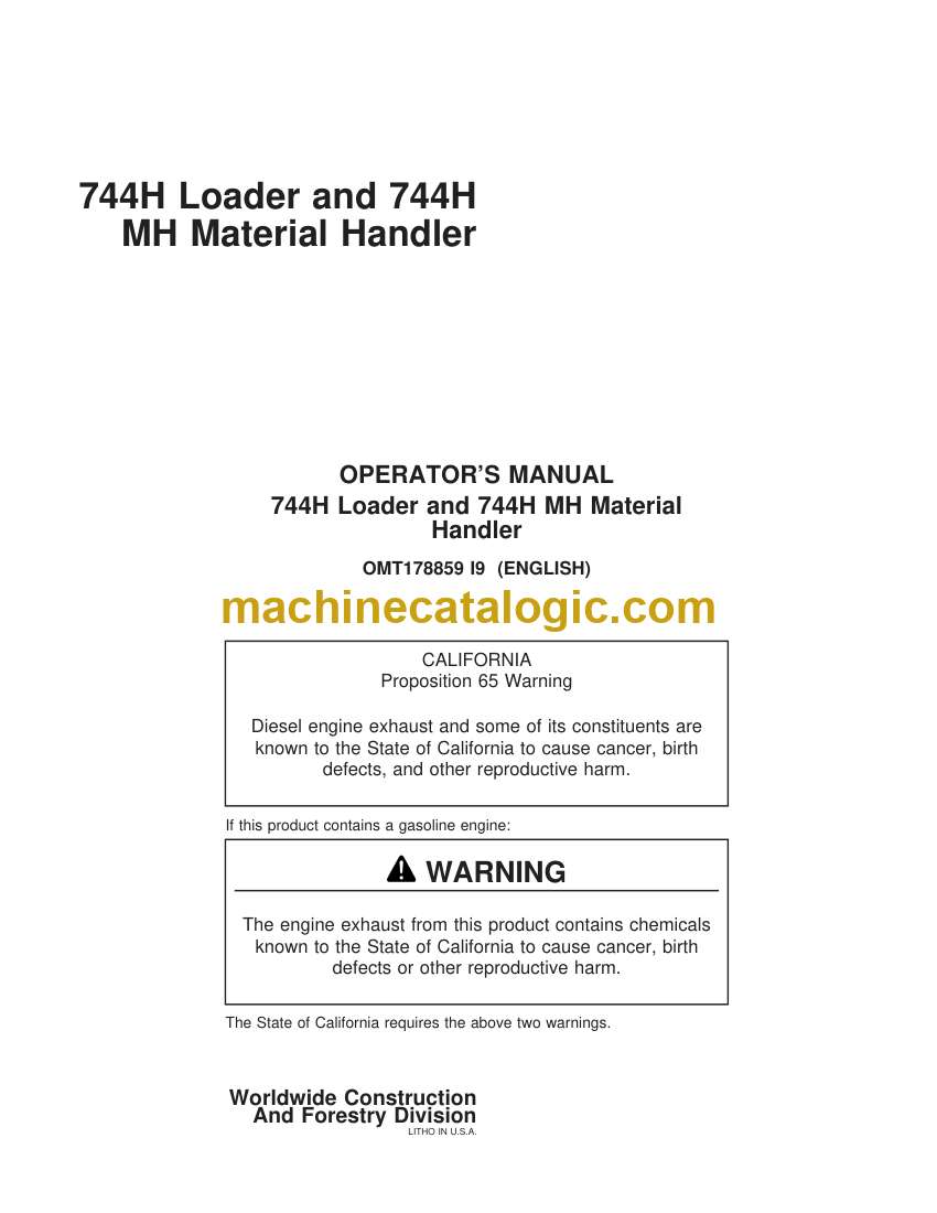 John Deere 744H Loader and 744H MH Material Handler Operator Manual (OMT178859)