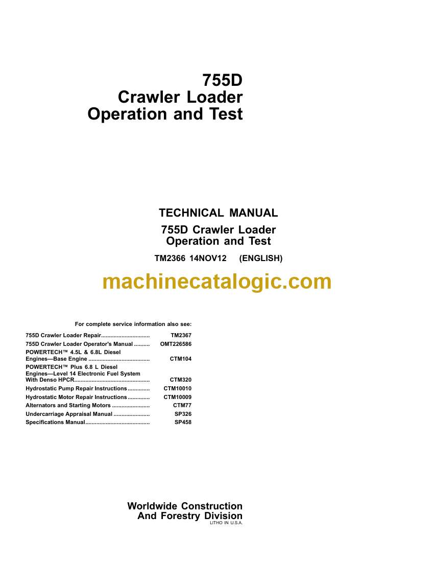 John Deere 755D Crawler Loader Operation and Test Technical Manual (TM2366)