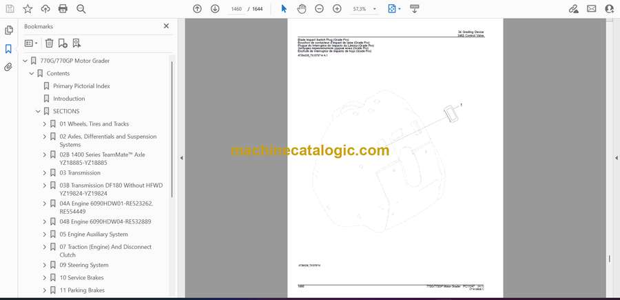 John Deere 770G, 770GP Motor Grader Parts Catalog (PC11247)