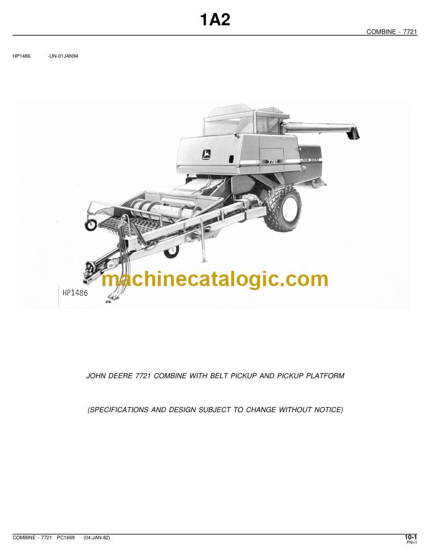 John Deere 7721 Combine with Belt Pickup and Pickup Platform Parts Catalog (PC1669)