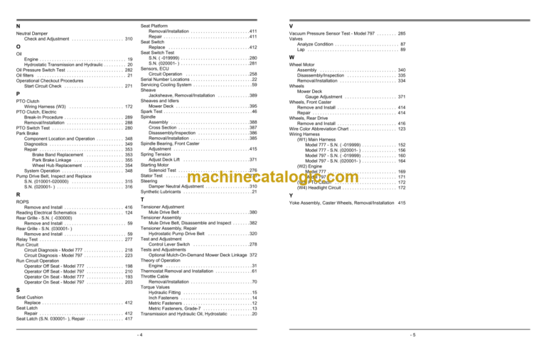 John Deere 777 and 797 Max-Frame Z-TrakTM Mower INDEX: