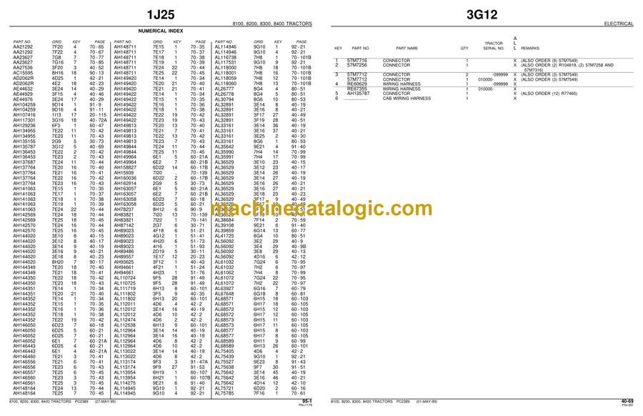 John Deere 8100, 8200, 8300, 8400 Tractors Index: