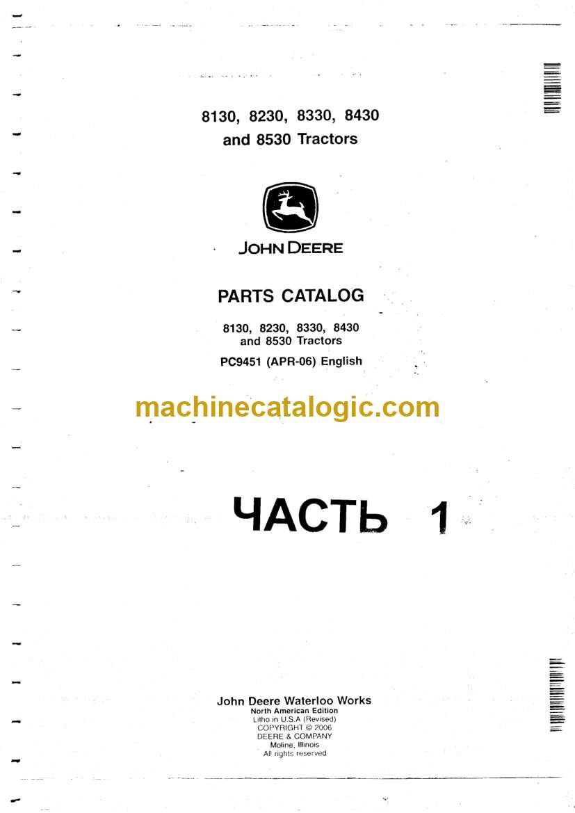 John Deere 8130, 8230, 8330, 8430, 8530 Tractor Index: