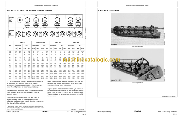 John Deere 814, 816, 818, 820, 822 and 825 Cutting Platforms Technical Manual (TM4533)