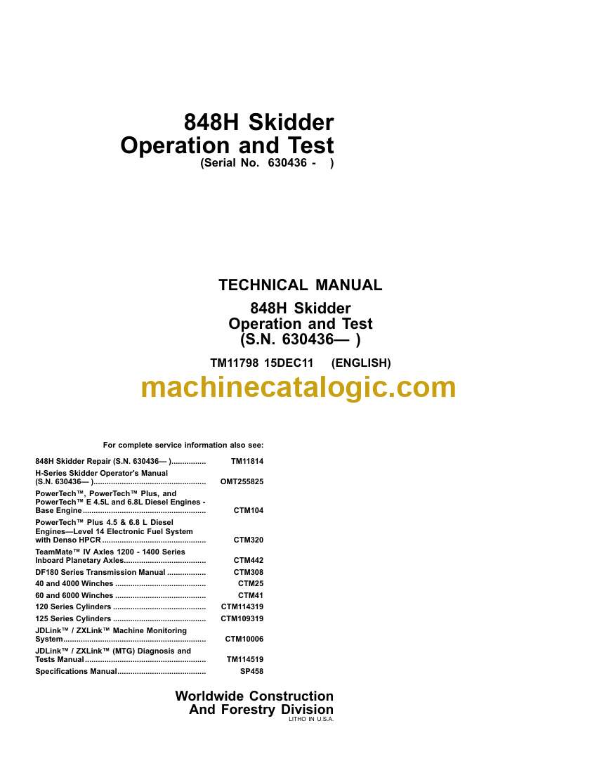 John Deere 848H Skidder Operation and Test Technical Manual (TM11798)