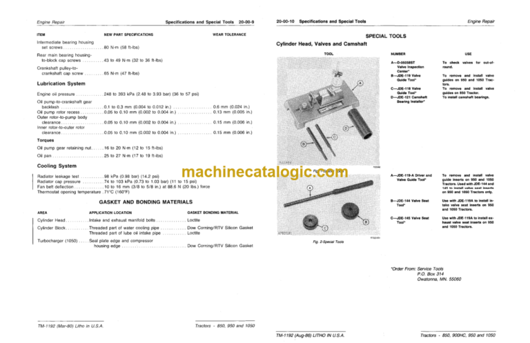 John Deere 850 900HC 950 and 1050 Tractors Technical Manual (TM1192)