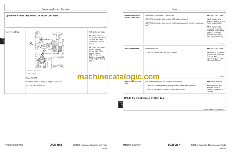 John Deere 850DLC Excavator Operation and Tests Technical Manual (TM10009) (06SEP07)