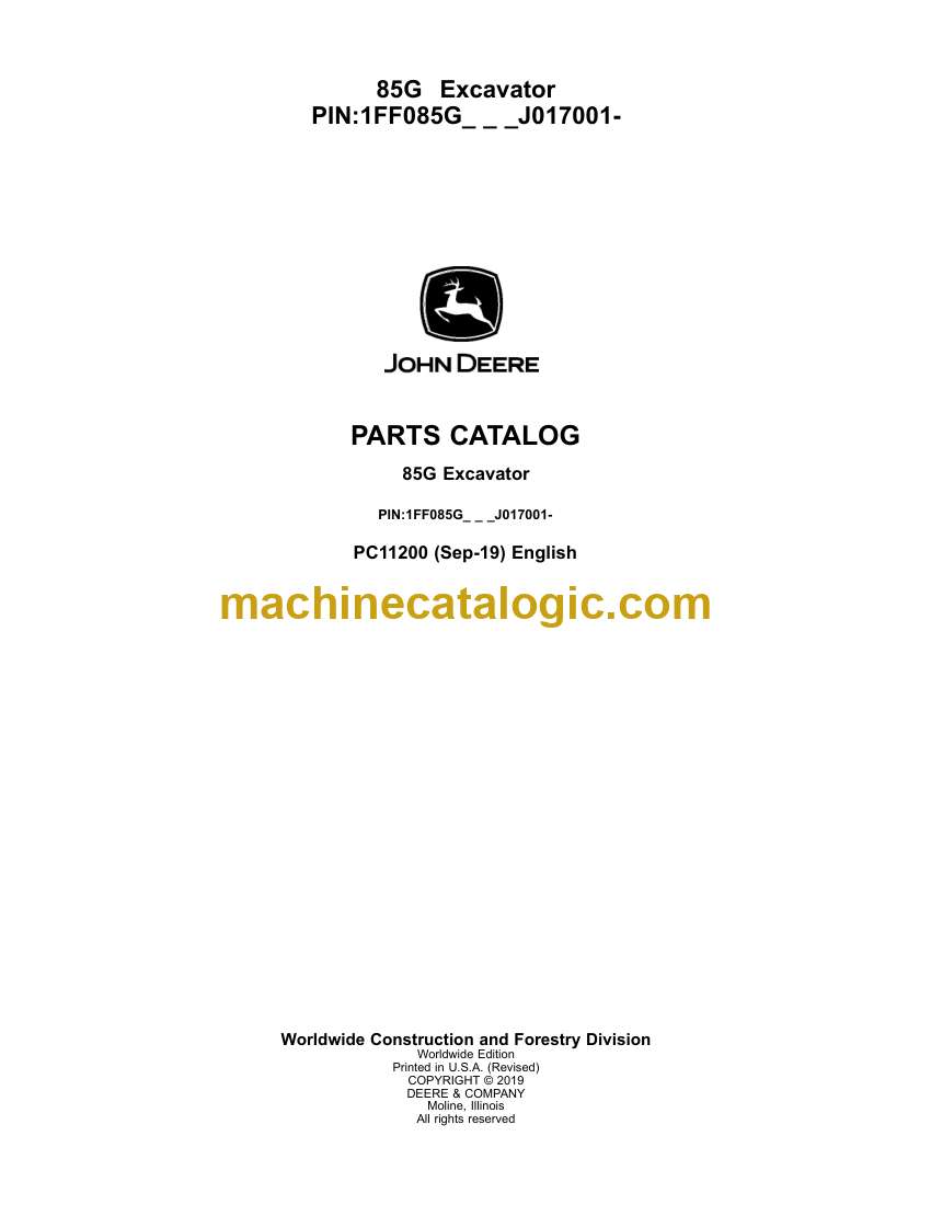 John Deere 85G Excavator Parts Catalog (PC11200)