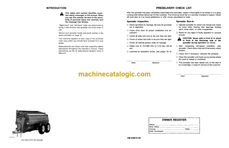 John Deere 870A Flail Spreader Operator’s Manual (OMA39510)