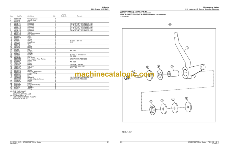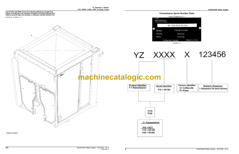 John Deere 872, 872GP Motor Grader Parts Catalog (PC10193)