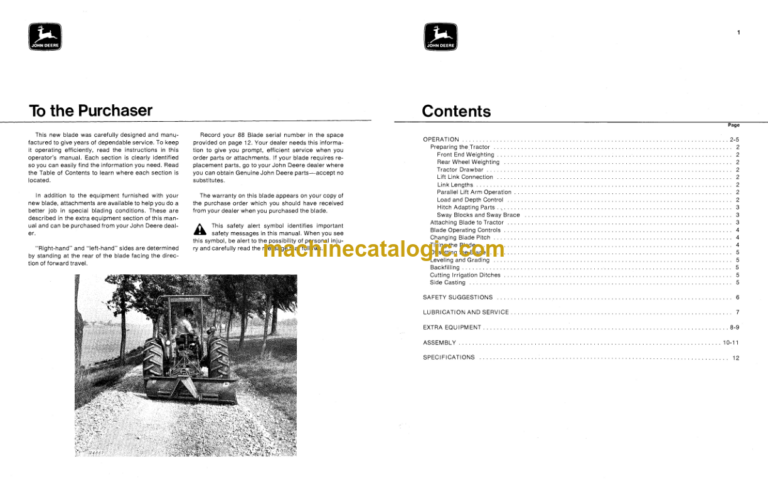 John Deere 88 Blade Rear-Mounted Operator’s Manual (OMW21312)