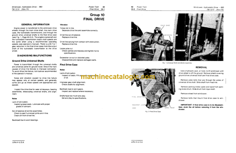 John Deere 880 Hydrostatic Drive Windrower INDEX: