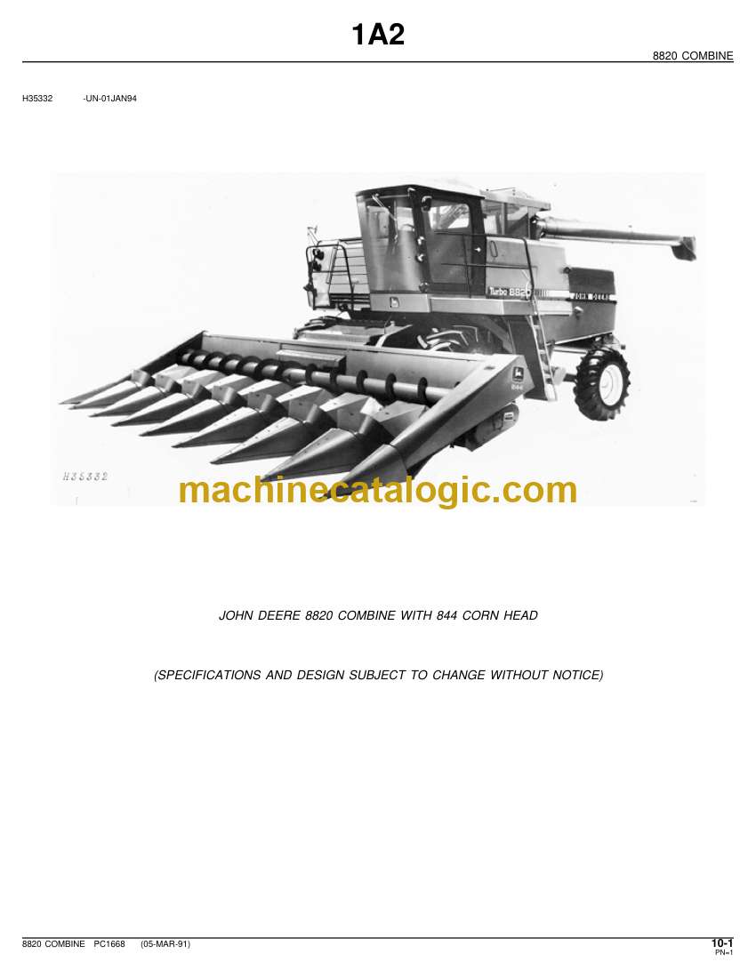 John Deere 8820 Combine with 844 Corn Head Parts Catalog (PC1668)