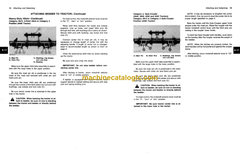 John Deere 884, 885, 886 and 888 Integral Bedders Plow INDEX:
