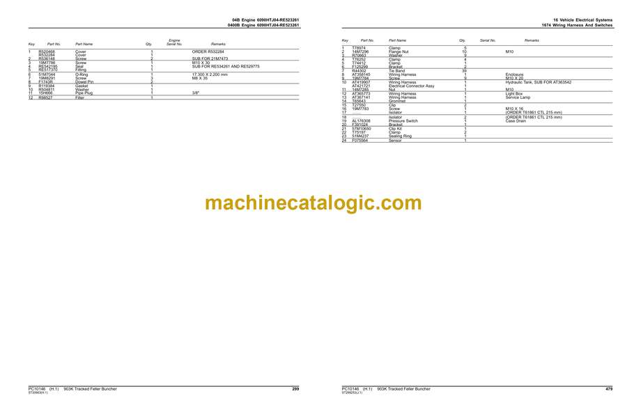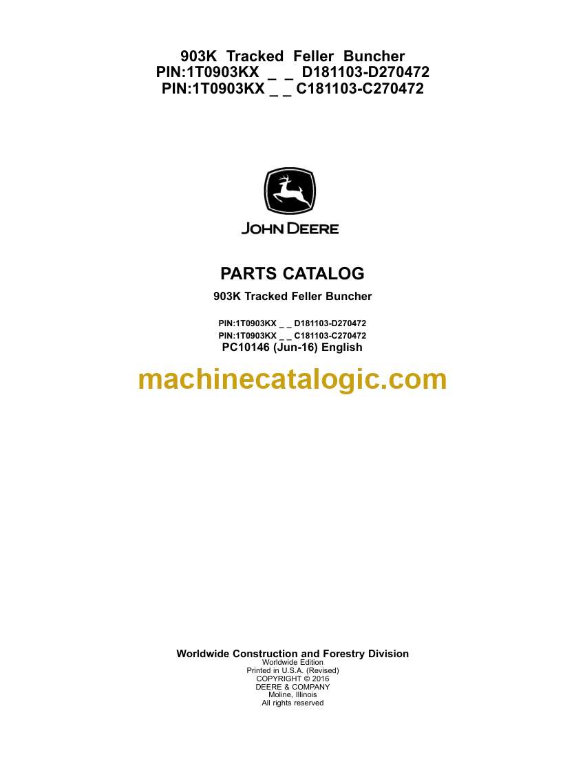 John Deere 903K Tracked Feller Buncher Parts Catalog (PC10146)