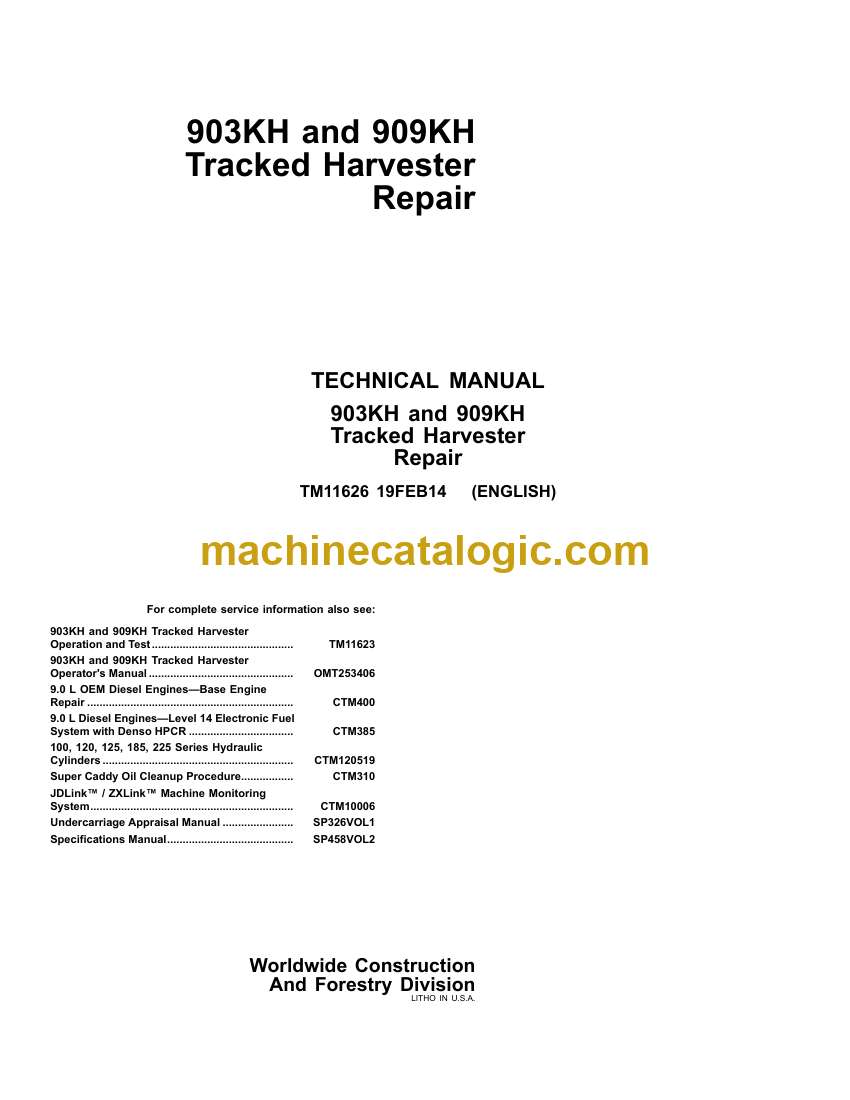 John Deere 903KH and 909KH Tracked Harvester Repair Technical Manual (TM11626)