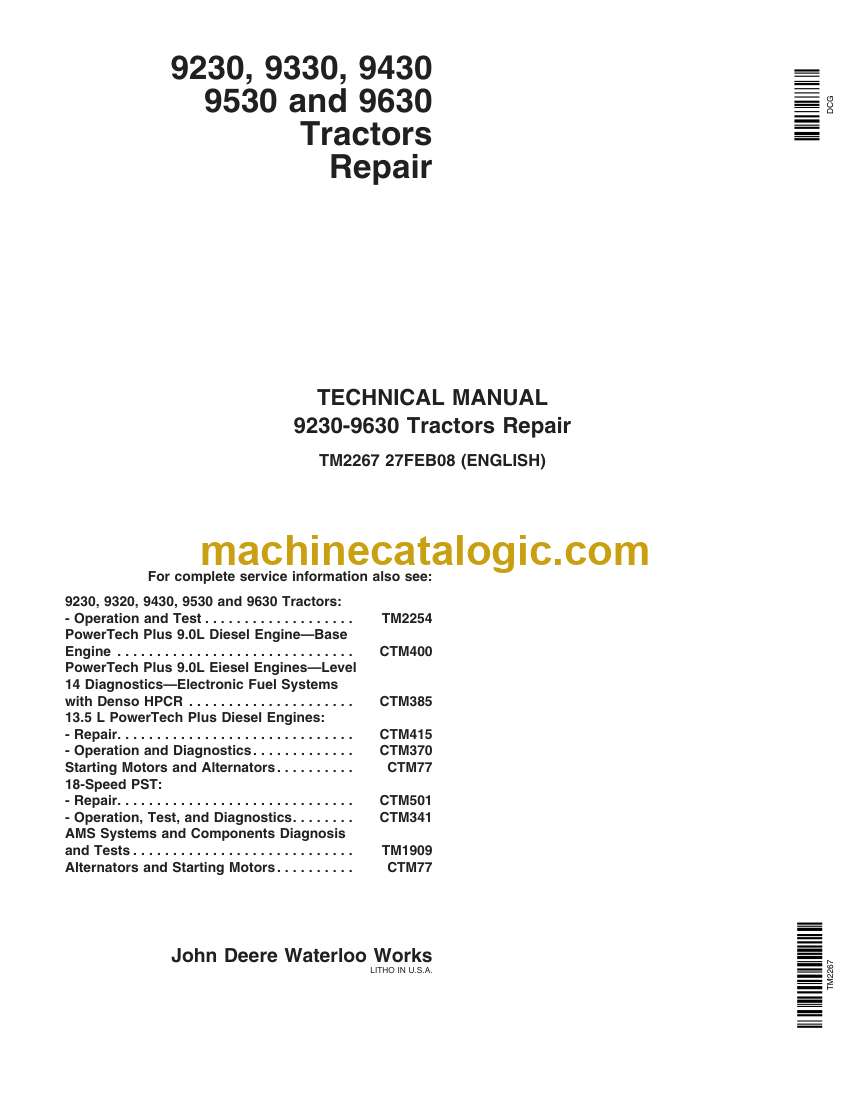 Model: 9230, 9330, 9430, 9530, 9630 Tractors