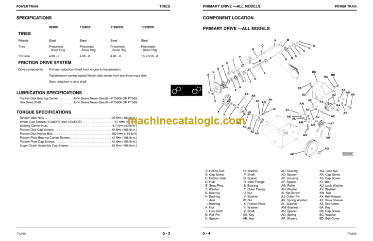 John Deere 924DE, 1128DE, 1128DDE, and 1332DDE Walk-Behind Snowblowers Manual (TM1867)
