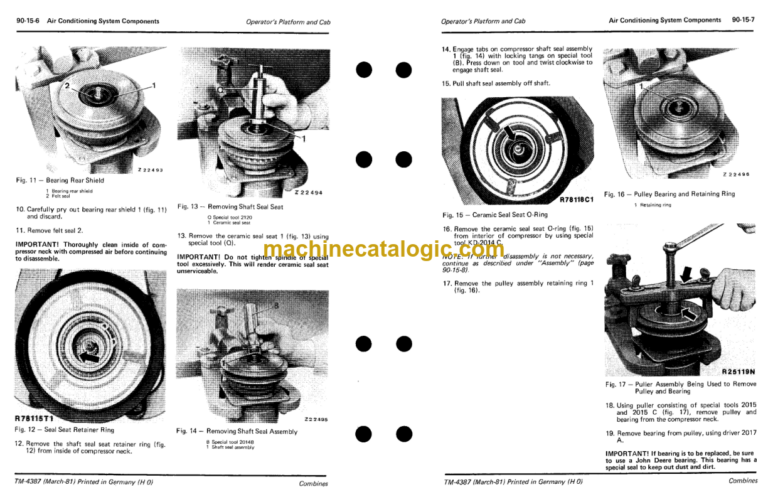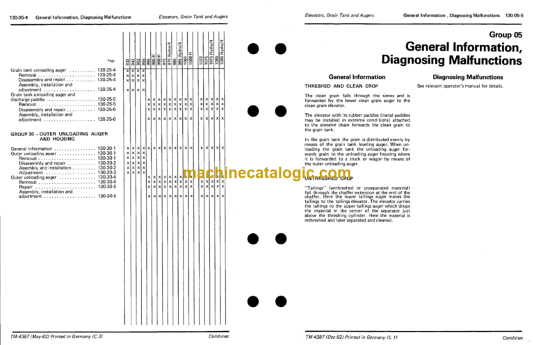 John Deere 932, 942, 952, 955, 965-H, 968-H, 975, 975 Hydro4, 985, 985 Hydro4, 1065, 1068-14, 1072, 1075, 1075 Hydro4, 1085, 1085 Hydro4 Combines Technical Manual (TM4387)