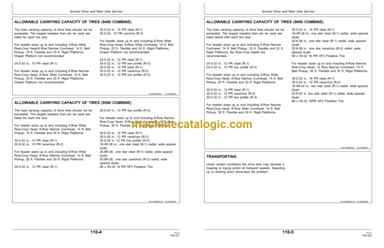 John Deere 9400, 9500 and 9600 Combines INDEX: