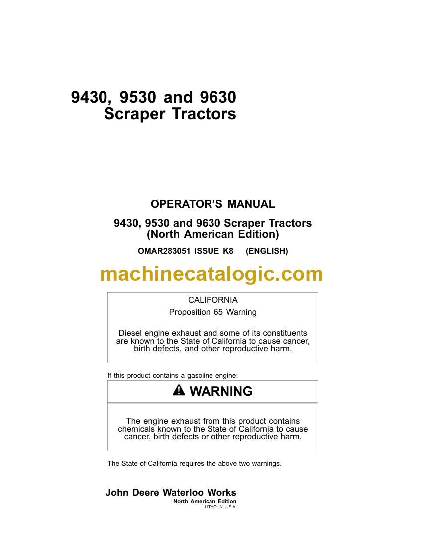 Model: 9430, 9530 and 9630 Scraper Tractors