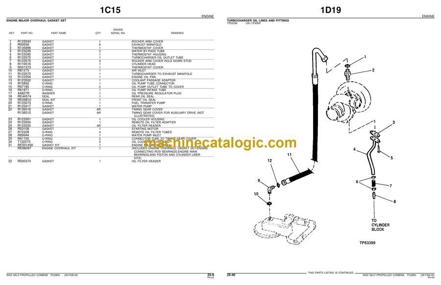 John Deere 9450 Self Propelled Combine Parts Catalog (PC2800)