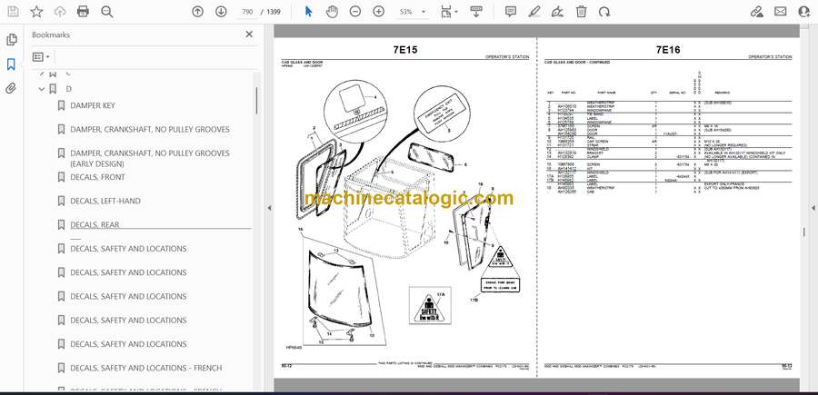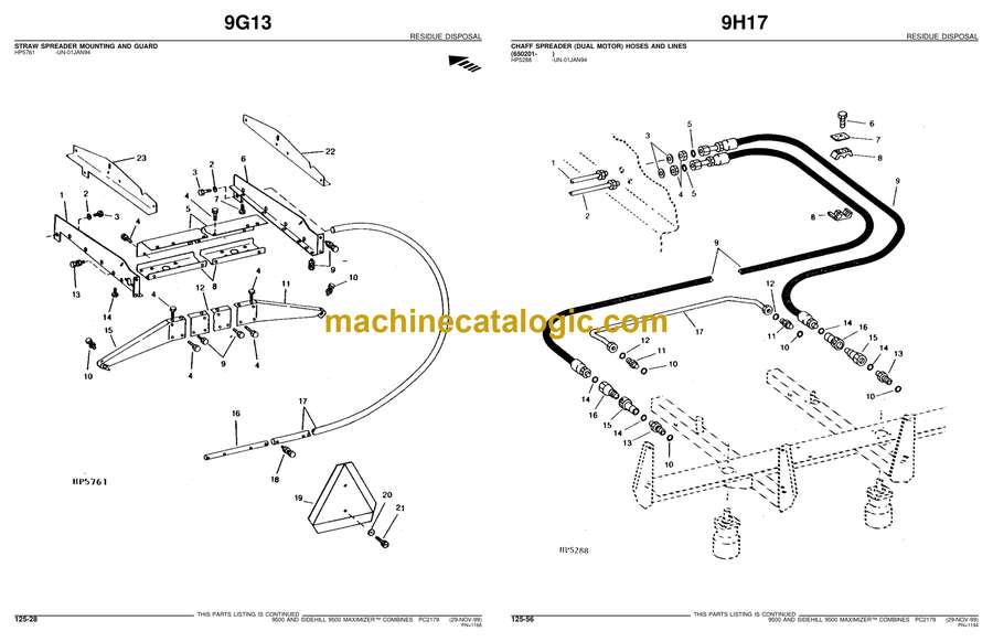 Running a John Deere 9500 combine in dusty fields all day, you’re constantly wearing on belts, bearings, and sheet metal. This parts catalog is what I use to pinpoint exactly which piece belongs where before I order anything. If a feeder house chain starts throwing links or a clean grain elevator sprocket is chewed up, I’ll open this catalog to trace that whole assembly, confirm every related part, and make sure I’m not missing a spacer, bushing, or oddball fastener.