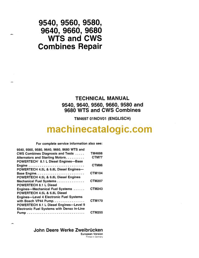 Model: 9540, 9640, 9560, 9660, 9580 and 9680 WTS and CWS Combines