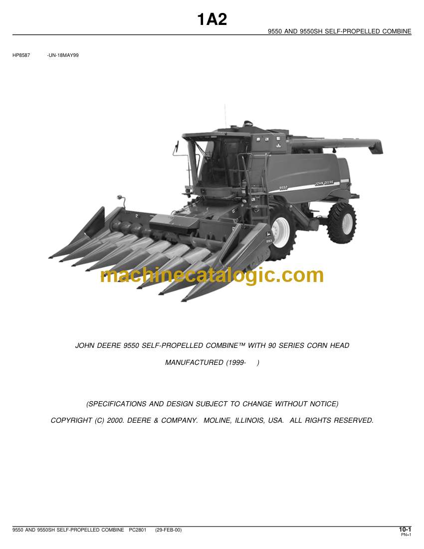 John Deere 9550 and 9550SH Self Propelled Combine Index: