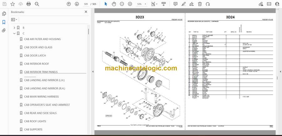 This catalog is what I keep nearby when a 9550 or 9550SH combine comes in after a hard season of cutting grain in dusty, rough fields. The machine works in dirt, chaff, and vibration all day, so small parts get worn or lost. This book lets you trace every assembly on the combine, see how components relate, and order exactly what you need the first time. For example, if a feederhouse chain is off and you find damaged sprockets and a missing spacer, this catalog helps you identify each piece in that stack so nothing is forgotten when you place the order.