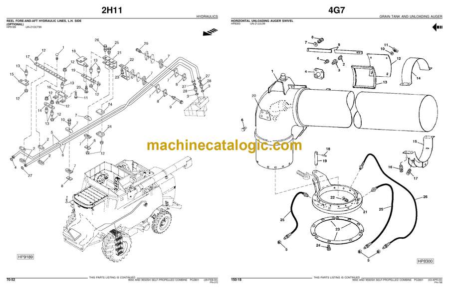 John Deere 9550 and 9550SH Self Propelled Combine Parts Catalog (PC2801)