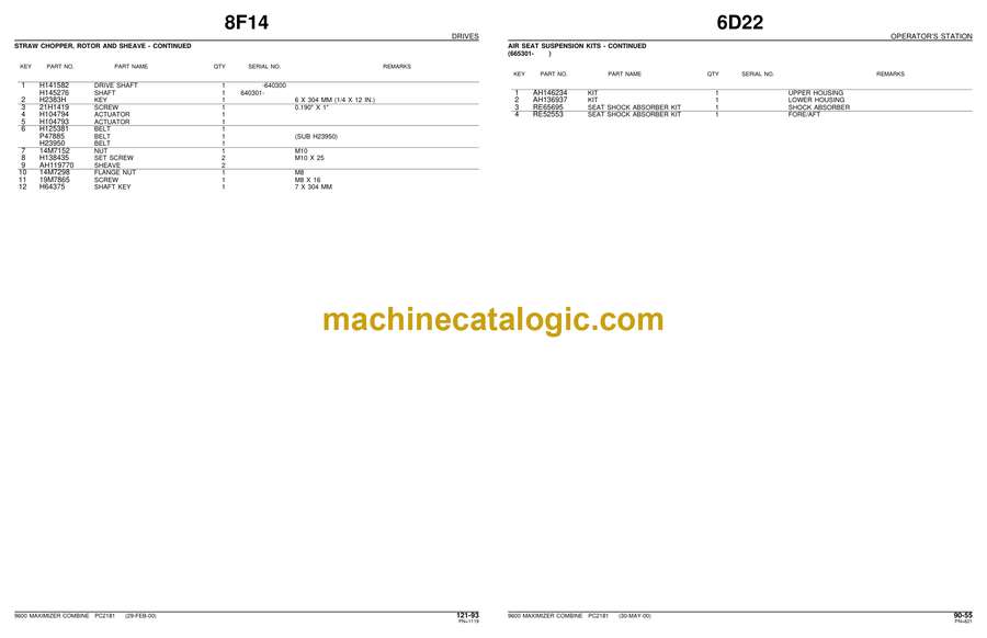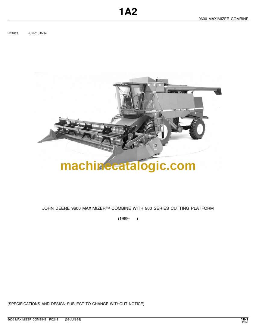 John Deere 9600 Maximizer Combine Parts Catalog (PC2181)