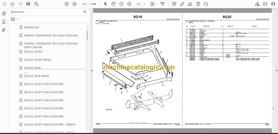Out in wheat, corn, or beans, the 9600 Maximizer is eating acres of crop and dust all day, so wear parts and small hardware disappear faster than you think. This parts catalog is what I use to trace every component in an assembly and make sure I’m ordering the exact pieces that fit your specific 9600. Say the feeder house is rattling and we find a worn chain and a couple of oddball bushings—this book lets me break that whole setup down on paper, identify each roller, spacer, and seal, and build a clean, correct parts list before we touch the order screen.