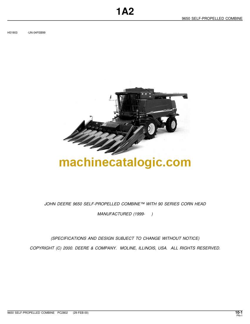 John Deere 9650 Self Propelled Combine Parts Catalog (PC2802)