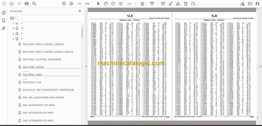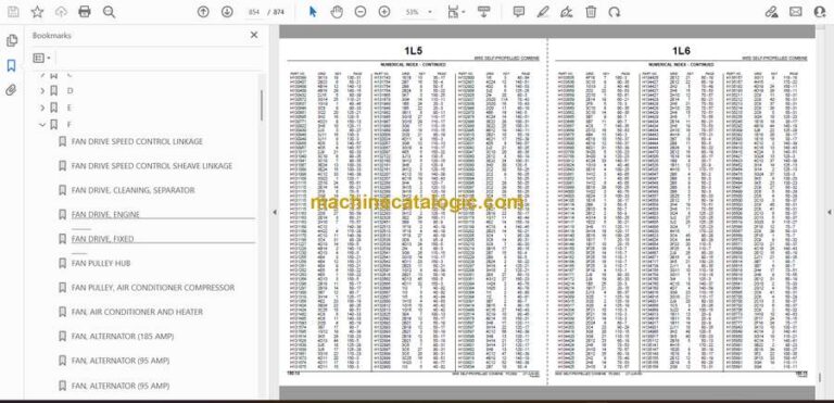 Running a John Deere 9650 combine means long days in dusty fields, cutting and threshing grain where breakdowns cost you real money. This PC2802 parts catalog is what I pull up when I need to pinpoint exactly which pieces make up a system on the machine and how they relate. Say the clean grain elevator is starting to slip or you’ve bent something in the feeder house—this book lets me trace every sprocket, chain, shield, and bearing so I can order the right parts the first time, even when there are mid‑series updates or options.