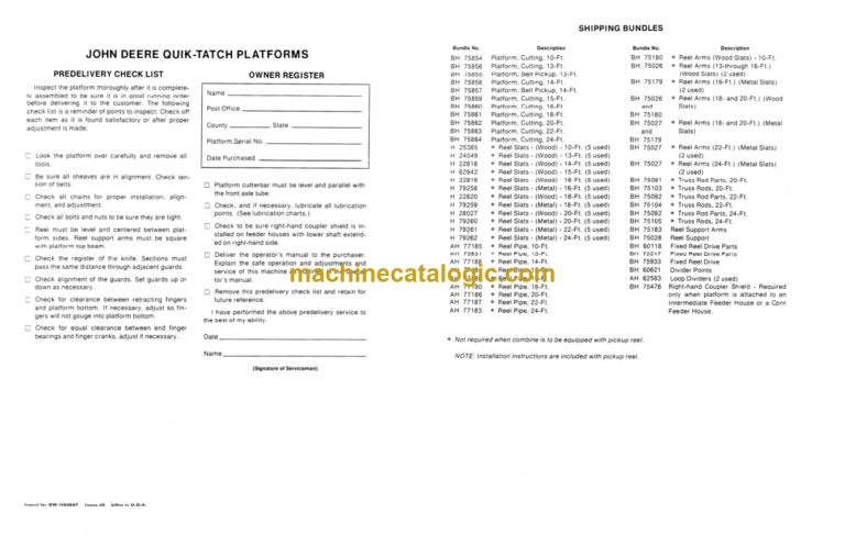 John Deere Combine Quick-Tatch Platforms INDEX: