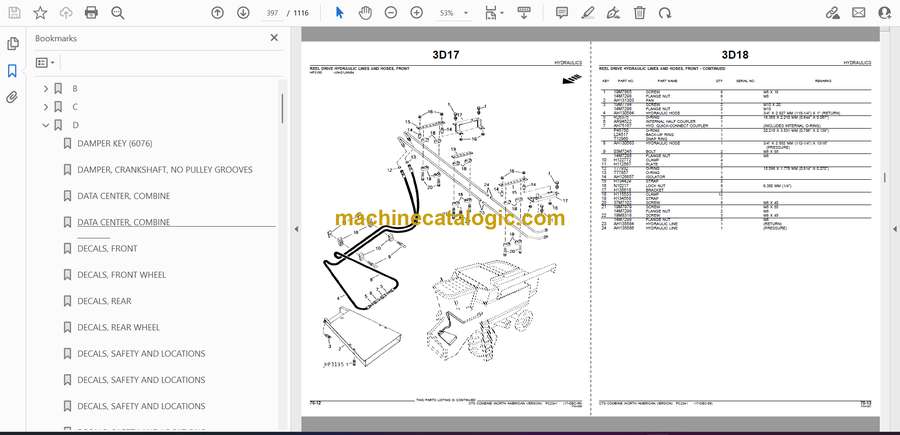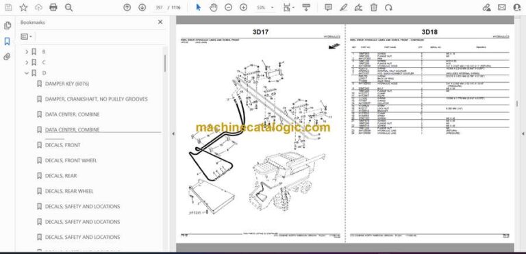 A CTS combine with a 900 Series platform spends its life in dust, chaff, and long harvest days, so wear parts disappear fast and small pieces get damaged or lost. This parts catalog is what I’d pull up when I need to visually break down an area of the machine and make sure I’m ordering the exact hardware, seals, and guards that match your setup. If, for example, you bend something on the platform or crack a drive component, I’d use this book to trace that assembly, see how each piece relates, and confirm I’m not missing a spacer or bushing before placing an order.