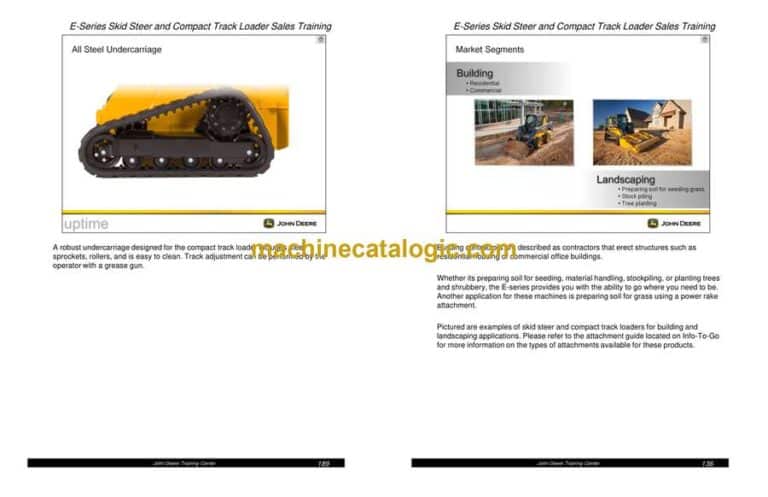 John Deere E Series Skid Steer Loader, Compact Track Laoader Sales Training Guide