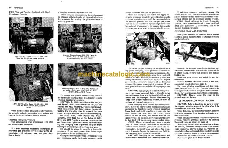 John Deere F350 and F360 Series Power-Reset Semi-İntegral Moldboard Plows INDEX:
